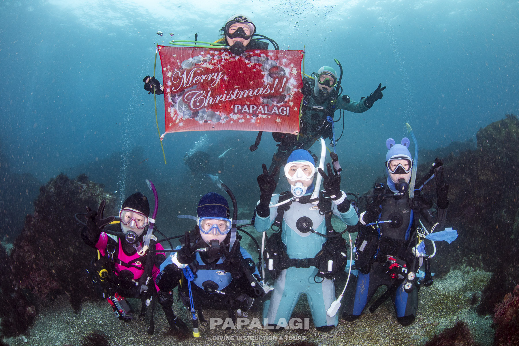 一番の冷え込みと言われていた週末でしたがダイビング中はお天気に恵まれそんなに寒さを感じませんでしたし水中が17〜18℃と例年通りの水温でメーカー推奨の専用インナーの中にヒートテック1枚挟むと快適に潜れました〜